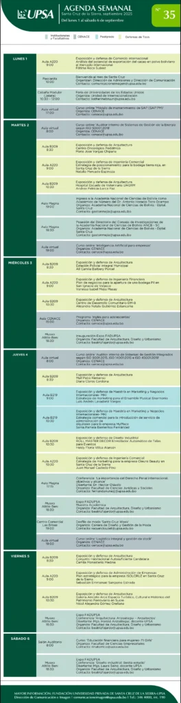 Otras actividades incluyeron visitas a compañías de diversos ámbitos y simulacros de entrevistas laborales. Estudiantes de la Universidad Privada de Santa Cruz de la Sierra – UPSA, conocieron las expectativas y demandas laborales de 54 empresas líderes de Bolivia que participaron en la 10° versión de la Feria de Vinculación Empresarial, una actividad organizada …