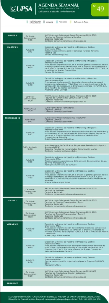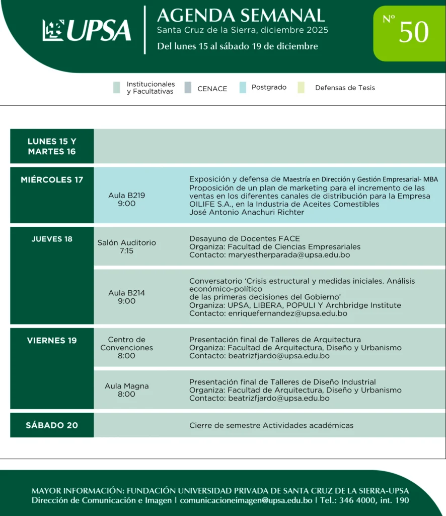 Contacto: Lourdes Chalup Unidad de Comunicación e Imagen – UPSA Av. Paraguá y 4º anillo Santa Cruz de la Sierra, BOLIVIA Email: lourdeschalup@upsa.edu.bo